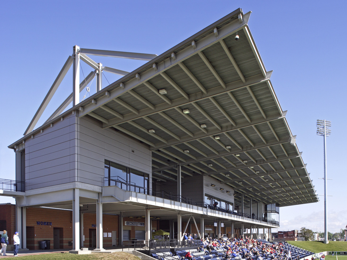 In response to creating an enhanced fan experience, a steep seating configuration covered by a large protective canopy was created to provide tremendous intimacy and a decided home field advantage in this soccer-exclusive stadium. Spectators have several seating options, including 2,200 fixed chairs, 700 bleachers, and a unique tiered grass seating area opposite the fixed seating that accommodates 2,100 fans. Multiple luxury suites, an enclosed press box, and a banquet area are features at the facility, solidifying Morrison Stadium as one of the best collegiate soccer-only venues in the country.
